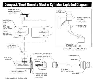 Master Cylinder, Compact, 3/4in. Bore, 1.120 in Stroke, Direct or Remote Reservoir, Aluminum, Black Paint, Kit.