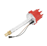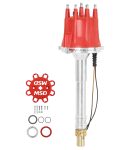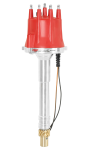 This strong, billet aluminum distributor is set up for engines that run locked-out timing or an MSD Timing Computer. With no advance assembly, the rotor plate is welded directly to the oversized shaft. A sealed ball bearing guides the top of the shaft while an extra long sintered bushing stabilizes the lower portion. Trigger signals are produced via a high-output magnetic pick-up. This pickup is extremely accurate and never requires adjustment. Since this distributor is designed primarily for race engines, an oversized (+.006") bronze gear is installed along with an adjustable slip collar for modified blocks, heads or intake manifolds.